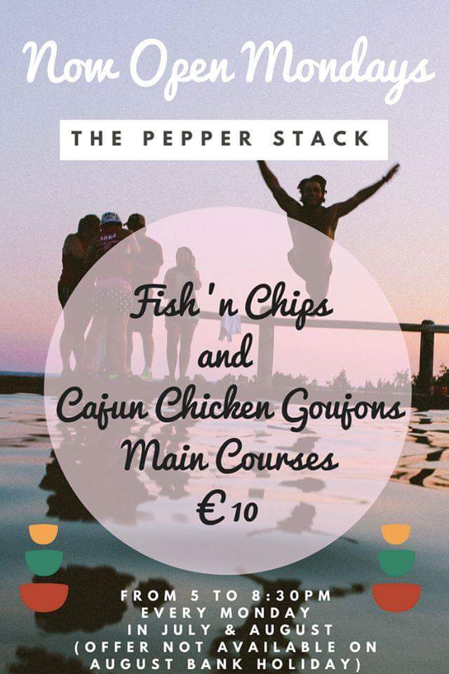 Summer Opening Hours kick in tomorrow. We'll be open from 5pm. Monday Main courses for a tenner #summerfood #corkfood #pepperstack #tennerfood #aghada Call in on your way back from one of our local beaches #guileen #inch #whitebay #rochespoint #eatdrinksmile 🍃🌞🍃