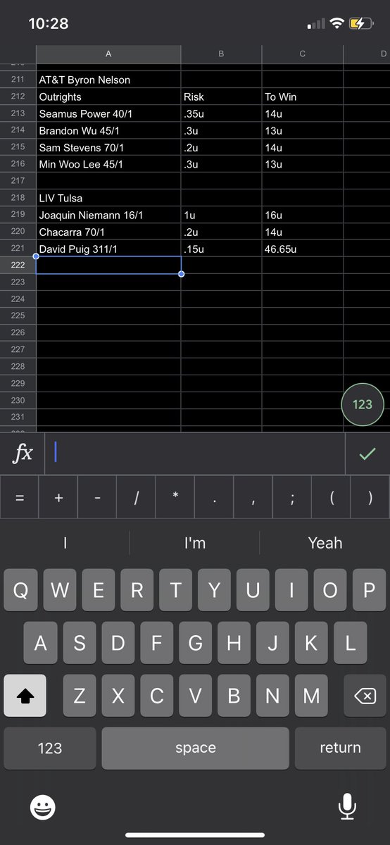 Late posting but Outrights for the Byron Nelson and LIV Tulsa (the blood money got to me). For reference I bet Puig every week just based on the small fields and his pedigree as an Am. It worked out for me with Chacarra in Singapore last year! #FreePicks #GamblingTwitter