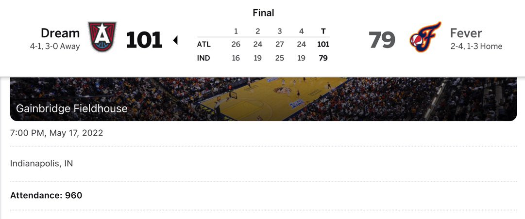 Three years ago on this date, I felt very lucky to handle PA announcing for the Indiana Fever. Tough L against Atlanta. Still feeling fortunate. But check that attendance number. Things are…different now. ABC soon. #IndianaFever