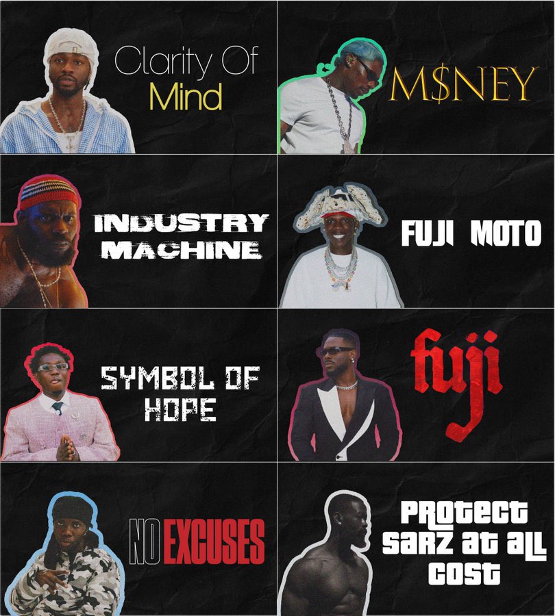 Albums to Expect this year 💿 • Asake - M$NEY • Omah Lay - Clarity of Mind • Odumodublvck - Industry Machine • Adekunle Gold - Fuji • Seyi Vibez - Fuji Moto • Zlatan - Symbol of Hope • Sarz - Protect Sarz At All Costs