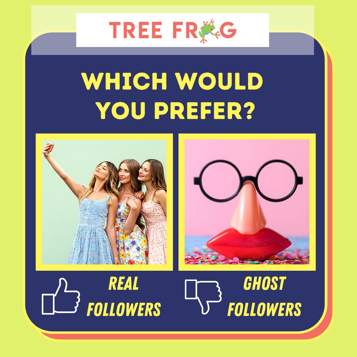 We don't mess around with fakes 🙅 So you can trust that we won't be bloating your account with ghost profiles! We don't force any fake growth -- we're all natural here 🌱🐸😎 Learn why we care at treefrogsocial.com 📲 #GetNoticed #TreeFrogSocial #GrowYourInstagram #Ins ...