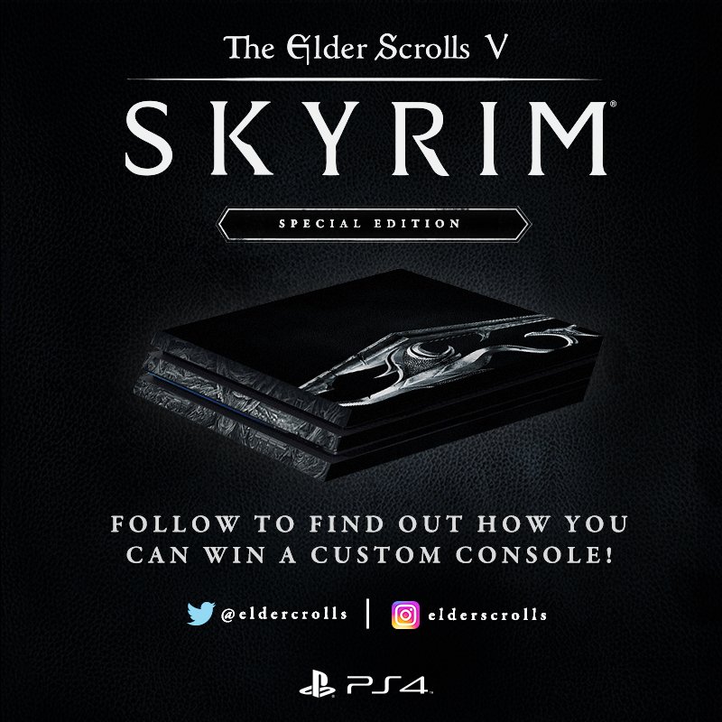 To celebrate #PS4Pro, one lucky fan will have a chance to win this custom #Skyrim console. RT + Follow for a chance to win #SpecialEdition4k