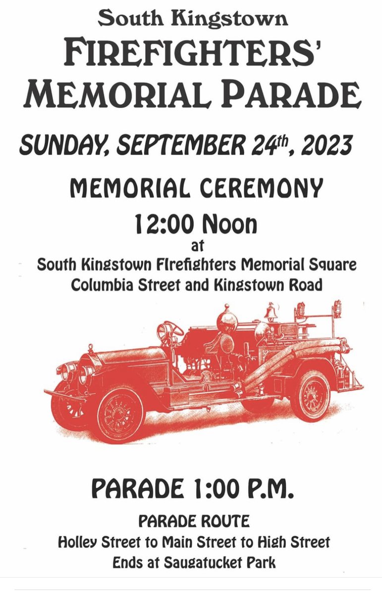 Residents Invited to Attend South Kingstown Firefighters’ Memorial Parade This Sunday dlvr.it/SwLQNP