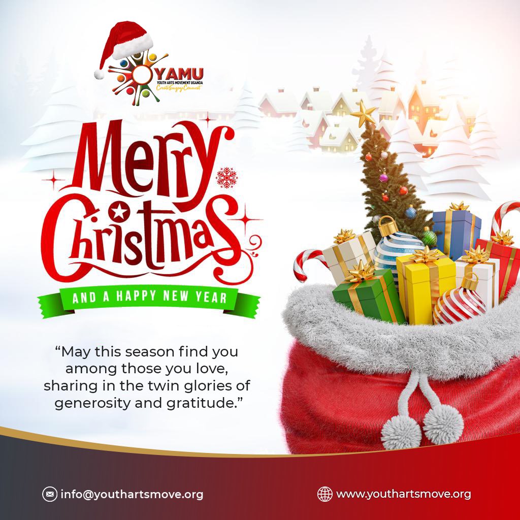 🎄✨ From all of us at Youth Arts Movement Uganda, we wish you a Merry Christmas and Happy Holidays! May this season bring you joy, peace, and inspiration to keep creating and transforming communities. Here’s to a brighter and impactful 2025! 🌟 #MerryChristmas2024 #HappyHolidays