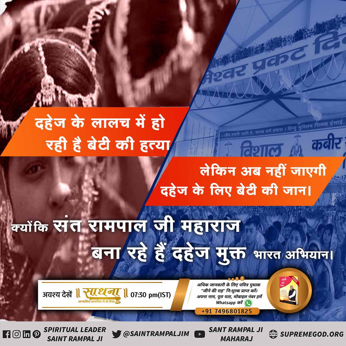#Marriage_In_17Minutes 💰दहेज के कारण मासूम लड़कियों को गर्भ में ही मार दिया जाता है। लेकिन, अब बेटी बोझ नहीं। क्योंकि संत रामपाल जी महाराज दहेज मुक्त भारत बना रहे हैं। संत रामपाल जी महाराज के शिष्य बिना दहेज के 17 मिनट में रमैनी (शादी) करके, खुशहाल जीवन #Dahej_Mukt_Bharat