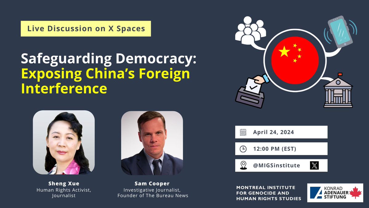 Join us X Spaces on foreign influence next week - featuring @ShengXue_ca and @scoopercooper 🗓️ 24 April 🕛 12 PM (EST) @KAS_Canada
