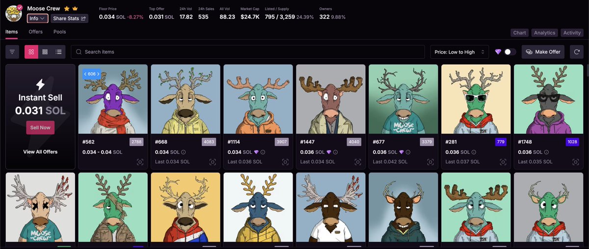 Extremely undervalued project -cool art -some 1 of 1 pieces - moose @MooseCrew_ when nfts go crazy again this is gonna 10-50x imo maybe more