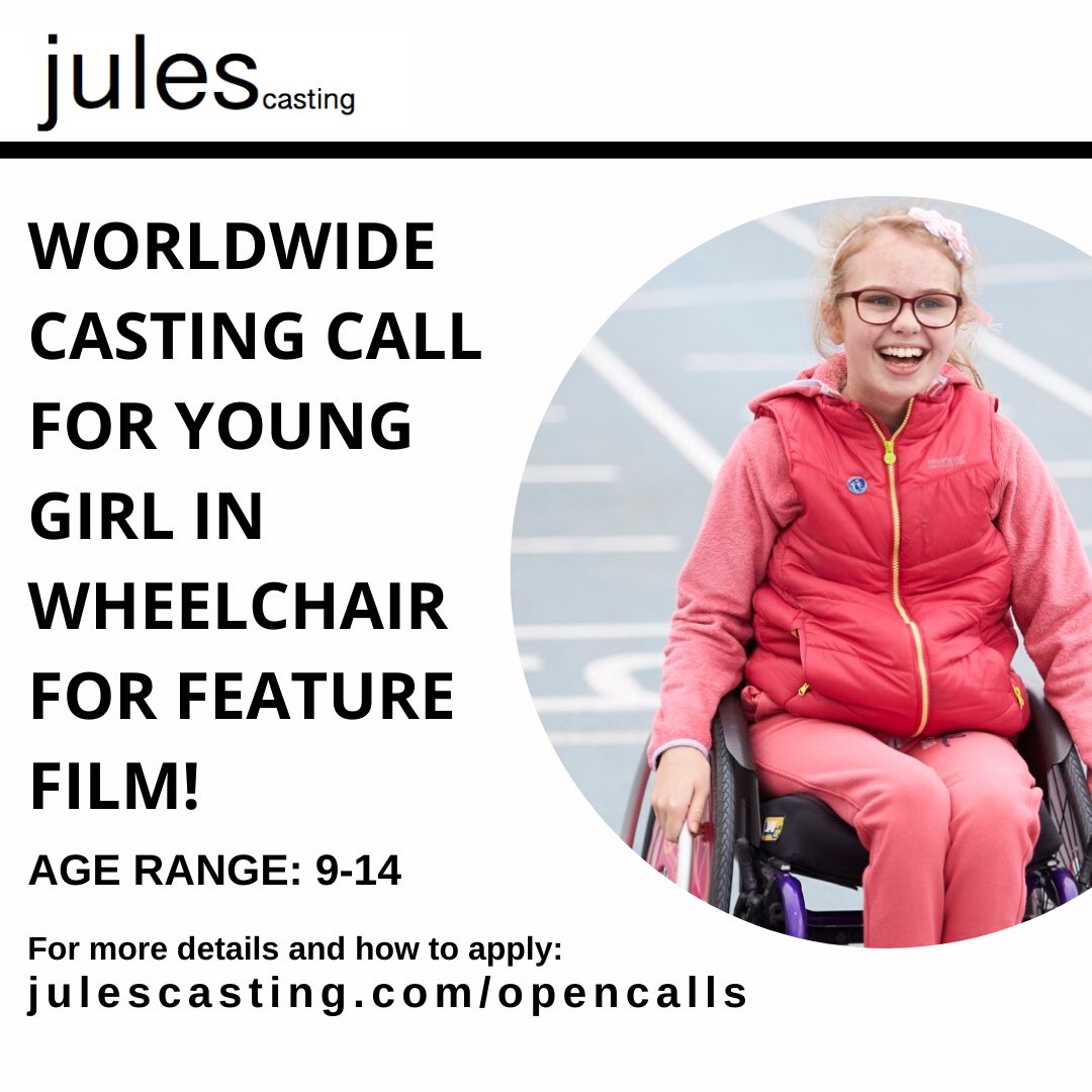 Pls RT! Worldwide Casting Call for Young Girl in Wheelchair for Feature Film!! Details at julescasting.com/opencalls #julescasting #castingcall