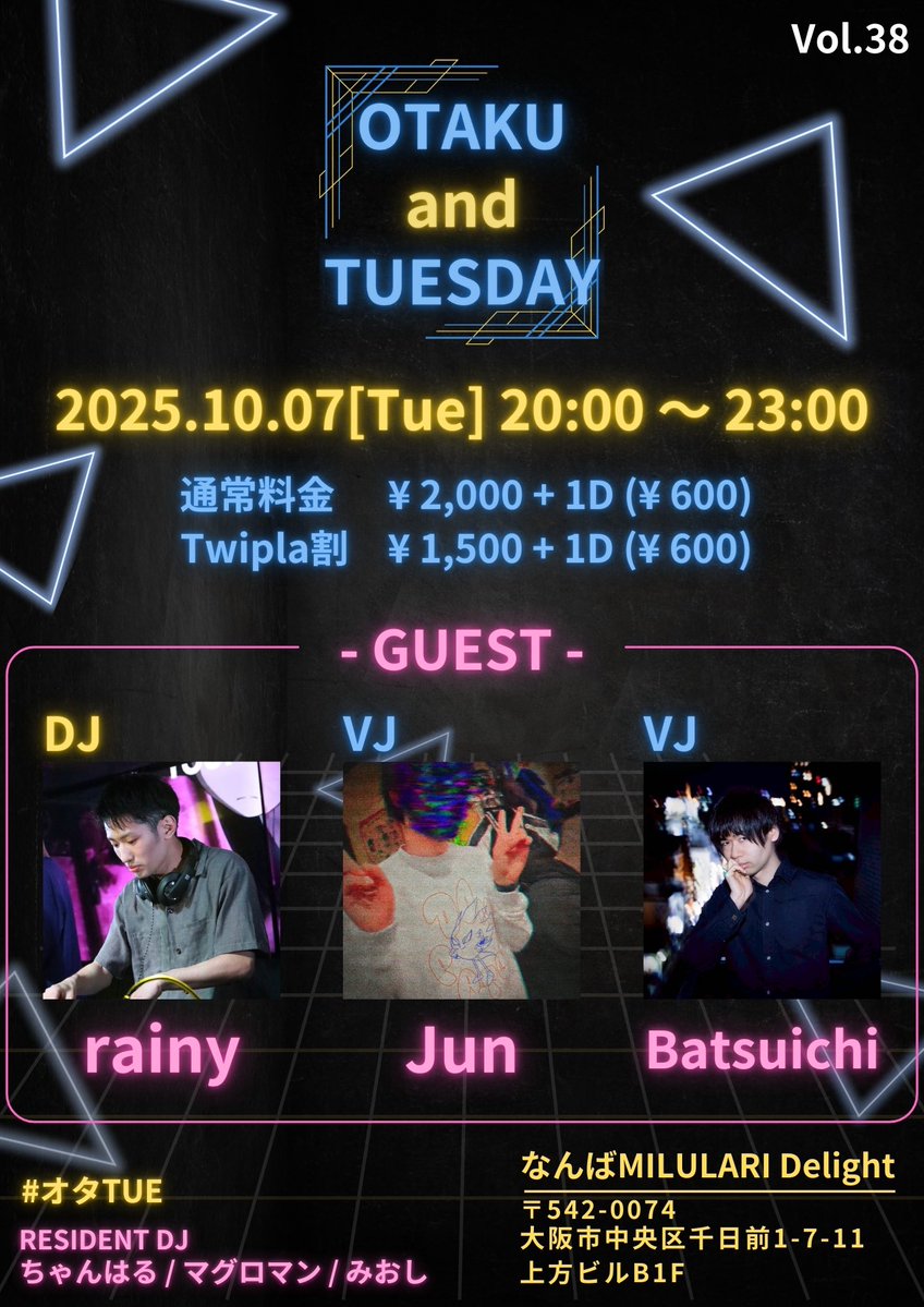 💞OTAKU and TUESDAY💞 #オタTUE 3周年‼️🎉👏🏻 本日なんば @milulari Delightにて! お昼開催なので良ければ🥰 お隣では #moja生 が開催されております✨ 🌟twipla.jp/events/690026