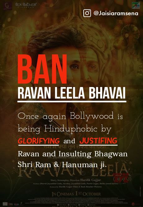 Once again Bollywood is being Hinduphobic by GLORIFYING and JUSTIFING Ravan and Insulting Bhagwan Ram and Hanuman Ji. Lets come forward and teach them a Lesson. #banravanleela_bhavai #arrestpratikgandhi