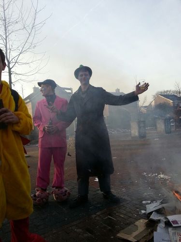Bij een stel zieke downs in de trein die het nodig vinden om te gaan roken en het stoer vinden om over het slopen an een trein te praten