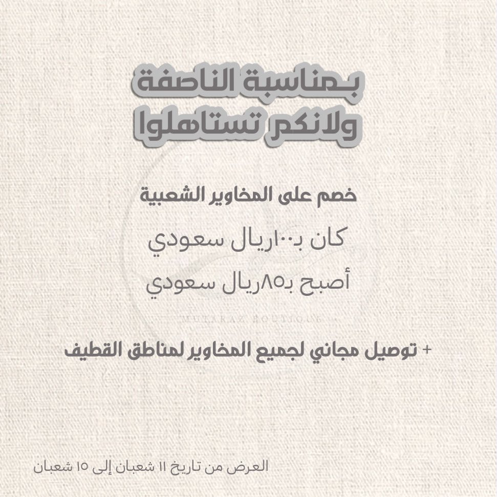 للي مهتم يـضيفنـا و يفعل الـتنبيهـات يترقب تـشكيلتنـا الـجديـدة للـمخاويـر بـ منـاسبة قدوم الناصفة و رمضـان 🤩🌙✨🤍🤍! - instagram.com/mutaraz.sa?igs… - tiktok.com/@mutaraz.sa?_t…