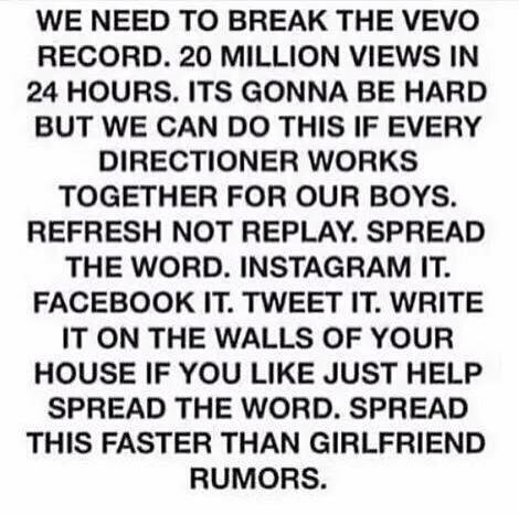 LETS DO THIS FOR THE BOYS RT TO SPREAD #DragMeDownMusicVideo #MTVHottest One Direction
