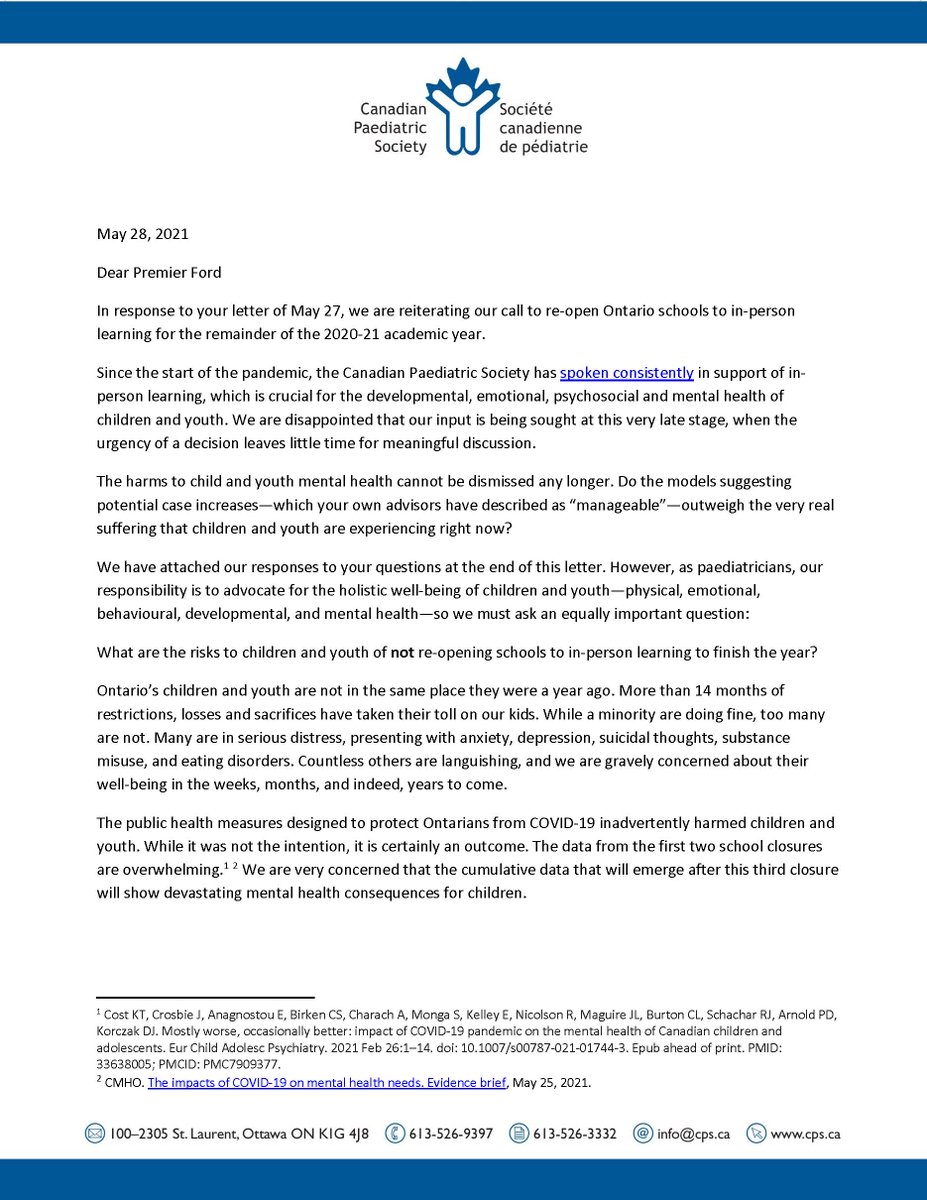 Our response to Premier Ford's request for input: “What are the risks to children and youth of *not* re-opening schools to in-person learning?” Read our response here: cps.ca/uploads/advoca… @fordnation @Sflecce @celliottability #oned #onpoli #COVID19 #KidsNeedSchool