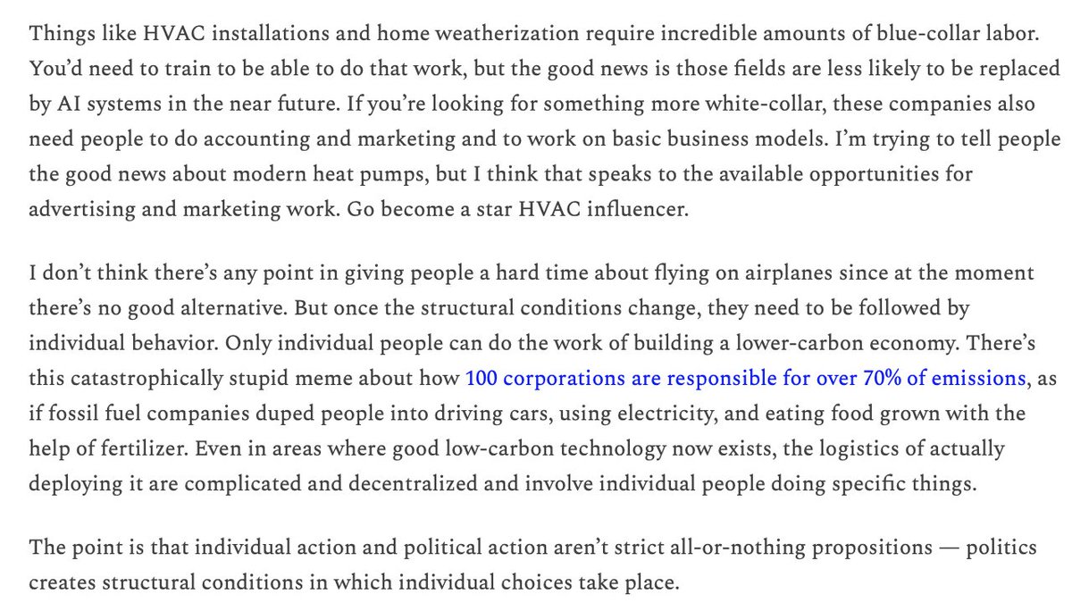 If you want to make a difference on climate, there are plenty of ways to do that beyond political activism. slowboring.com/p/individual-a…