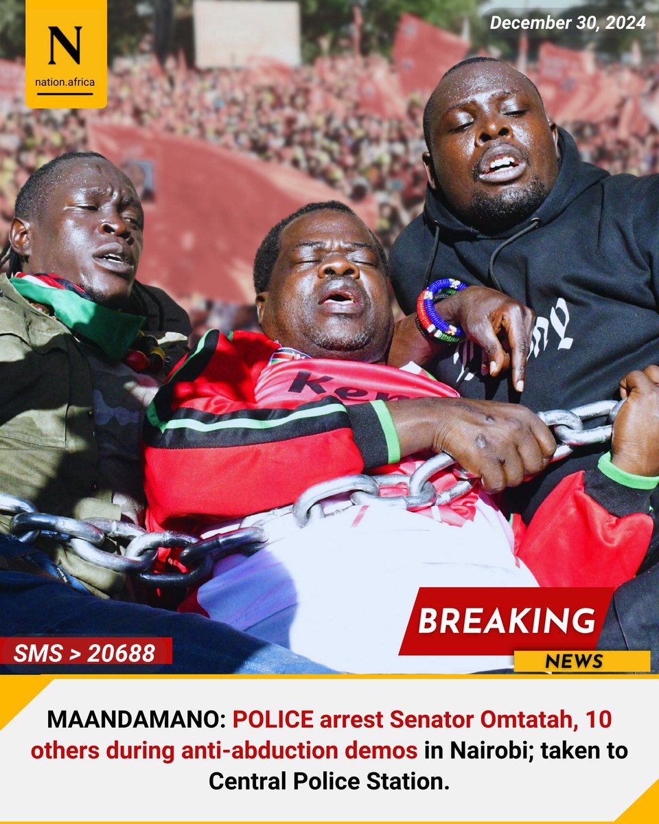 MAANDAMANO: POLICE arrest Senator Omtatah, 10 others during anti-abduction demos in Nairobi; taken to Central Police Station.