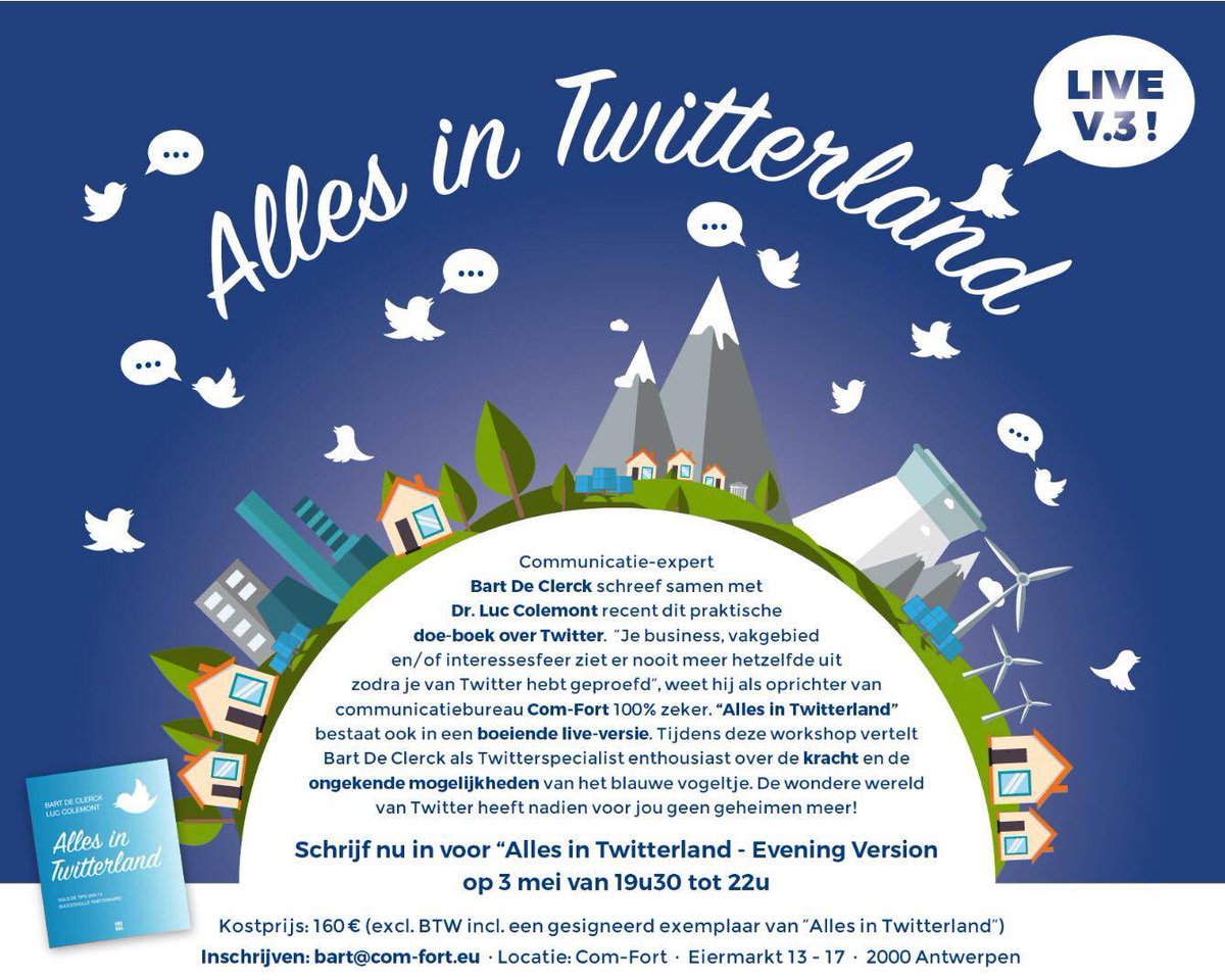 RT tussen 16 en 18 vandaag en maak kans op een gesigneerd exemplaar van #AllesinTwitterland Nog enkele plaatsen over voor de workshop op 3/5
