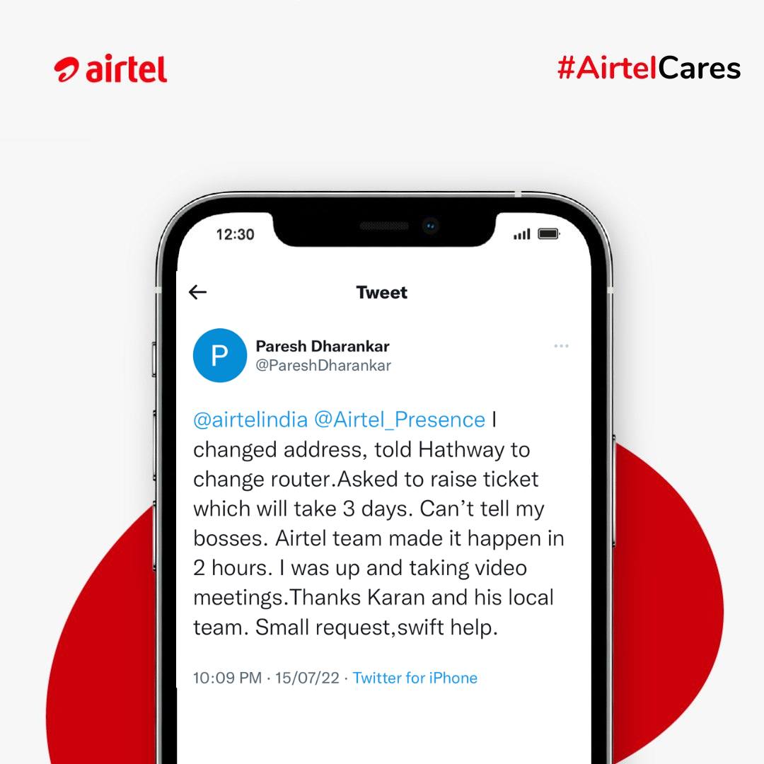 #TuesdayTestimonials | #AirtelCares | #WeMetOnTwitter💙 | We’ll be there for you because you’re always there for us too. 🥹 DM us & we will not rest until we sweep you off your feet once again ♥️
