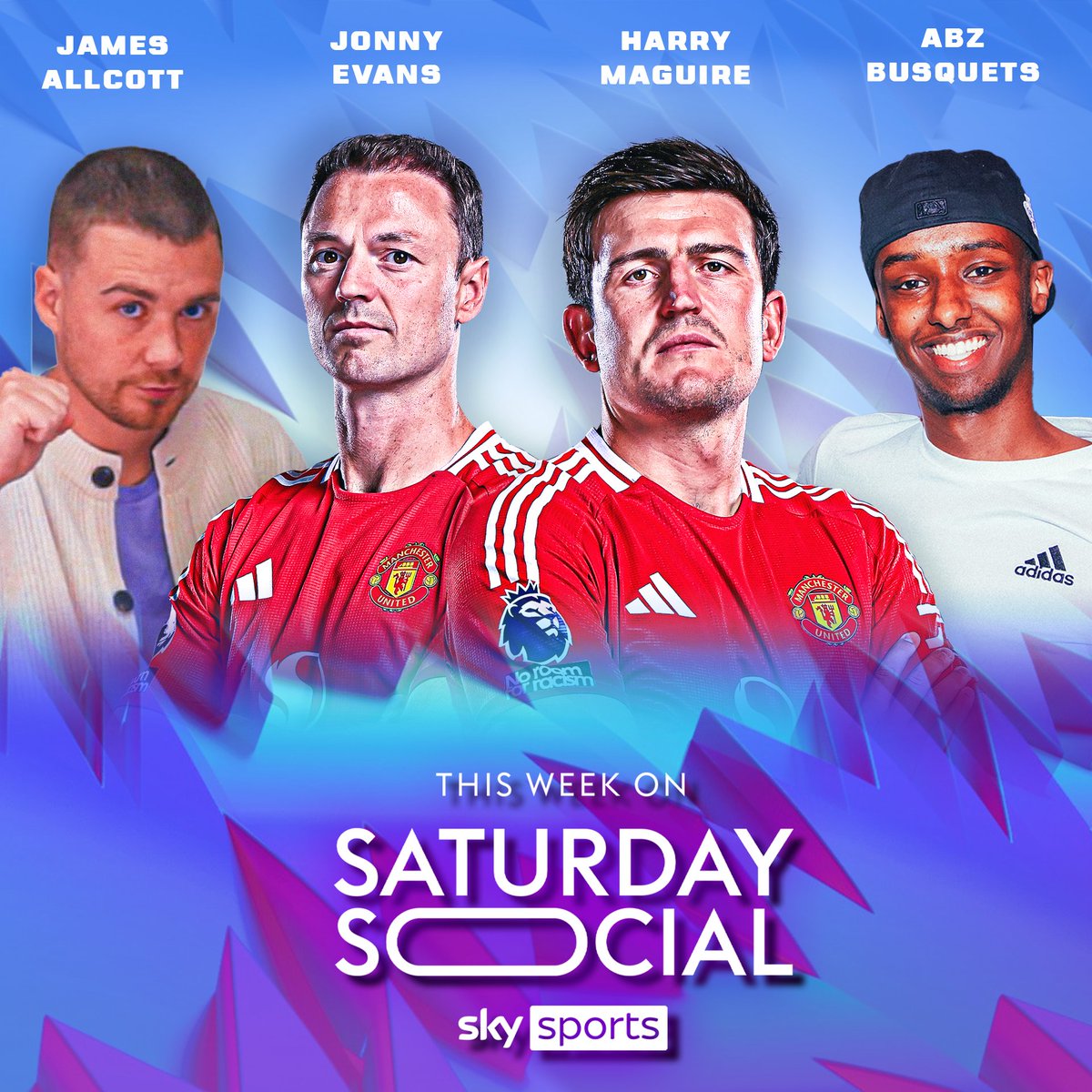 🎉 On Saturday Social this week 🎉 ⚽ James Allcott 🔴 Abz Busquets 🗣️ Beat The Clock with Evans & Maguire ⏰ Join us at 10am on Sky Sports Premier League & Sky Sports Football ⏰