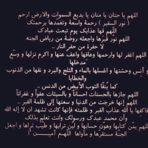 يارب كُن لأمّي أنيسًا، رحيمًا، وأشملهَا بالعفوِ والإحسانِ والغُفران، اللهُمَّ أرحم أمّي رحمةً تطمئِنُّ بها وتؤنِس وحشَتُها في القبرِ، وأن تُسكنها الفردوسَ الأعلى وترزقهَا رؤية وجهَك الكريم 🤍🌺