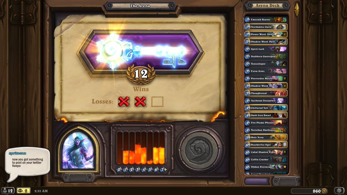 My first 12 win priest in arena BibleThump This makes my average 8 over 2 runs. Arena leader board here I come Kappa
