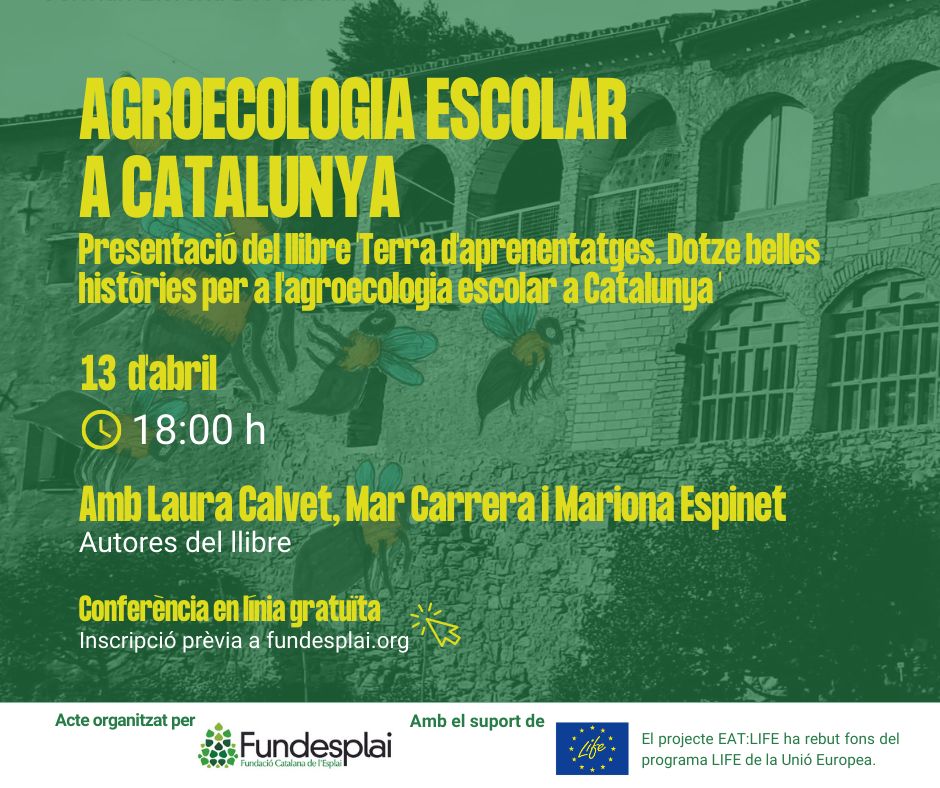 🔈 Nova activitat en línia gratuïta 🔈 📚 Vine a la presentació del llibre 'Terra d'aprenentatges. Dotze belles històries per a l'agroecologia escolar a Catalunya' 🌱 🗓️ Dijous 13 d'abril 🕕 18:00 h 🔗 Inscripcions: bit.ly/40oTsho 💬 Català i anglès