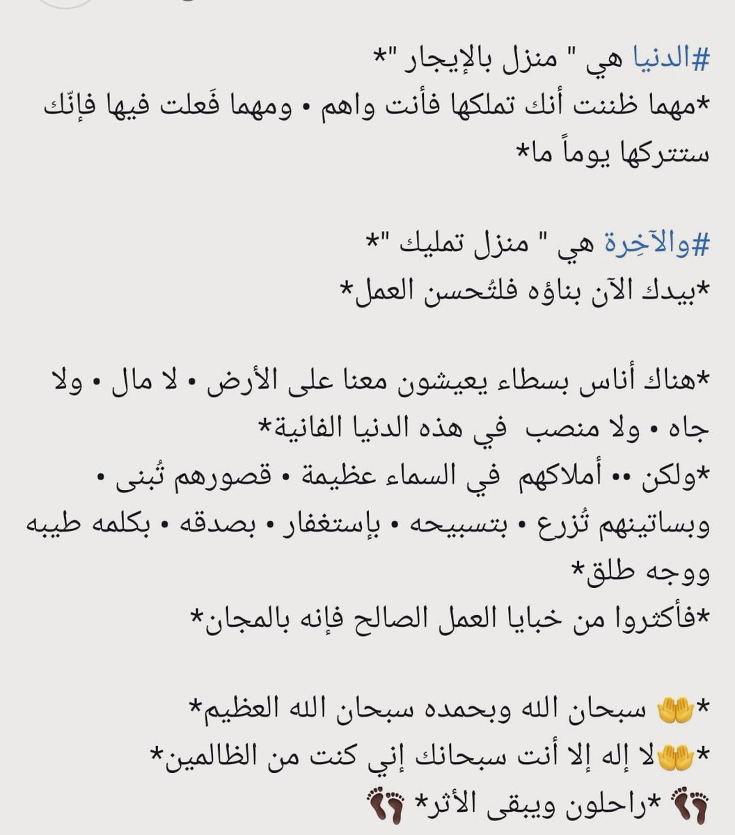 121K Followers 159 Following ننقل لكم أجمل الحكم و العبارات الدينية : تفاؤل ، أدب دين ، خواطر ، قرآن دعاء حديث تسبيح استغفار أذكار .