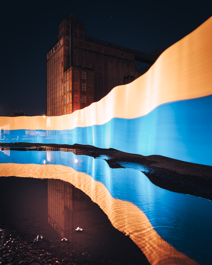 Slava Ukraini! Created this with some light painting down on the Port of Cork outside the R&H. Be sweet and retweet 🤗 #cork #corkcity 👀 Follow me instagram.com/peterotoole 💌 Prints available from peterotoole.ie