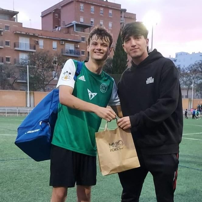 🥙¡Que aproveche! Nuestro Lateral Carlos Martín y Campeón de Andalucía con la Selección Onubense de la Universidad de Huelva, se lleva el Poke entregado por #MuxoPoke&Burritos Consigue un 10% de descuento presentando el carnet de socio del #CFEHuelvaColombina.