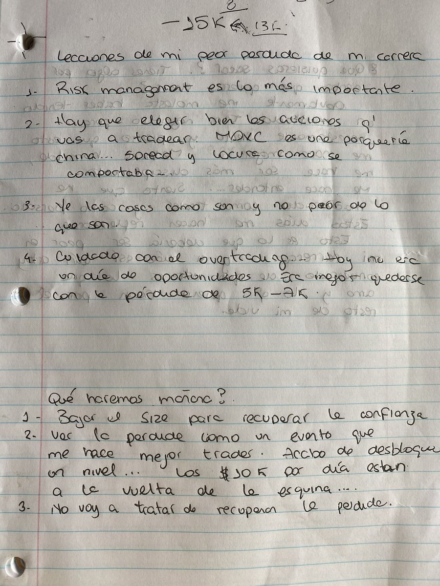 * Bajar el size para recuperar la confianza * Ver la perdida como un evento d aprendizaje que devela fallas en tu sistema y, ajustándolo, te va a hacer mejor trader. Las pérdidas son inevitables * No tratar d recuperar la pérdida * Después d esto,¿sigues amando lo q haces? 3/3