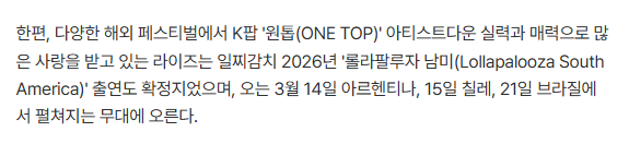 อื้อหือ ข่าวงาน ACL เว่อร์มาก RIIZE วง K-POP ระดับ One-Top ที่ได้โลดแล่นในเฟสติวัลใหญ่ต่างประเทศ และหลังจากนี้ RIIZE จะได้ไปขึ้นเฟสติวัลใหญ่ของฝั่งอเมริกาใต้อีกสามเมืองแบบจุกๆ ที่งาน Lollapalooza South America ในต้นปี 2026 ได้แก่อาร์เจนตินา (14 /3) ชิลี (15/3) และบราซิล (21/3)