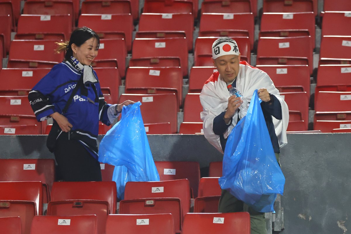 [FOTOS] Hinchas japoneses ayudaron a limpiar el Nacional tras el duelo con La Roja #U20WorldCup #Cooperativa90 tinyurl.com/4nr7rv2w