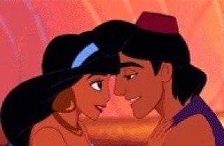 Al and Jasmine are taking a looooooong time to kiss right now . . . wait *pushes Aladdin to kiss jasmine already* There, much better!