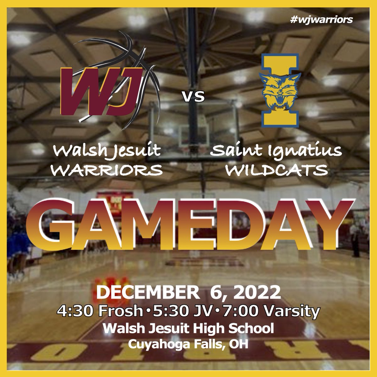 GAMEDAY‼️ 🆚 Saint Ignatius Wildcats ⌚️ 4:30 Frosh | 5:30 JV | 7:00 Varsity 📍 Walsh Jesuit High School 🎟️ walshjesuit.org/athletics/athl… 💻 boxcast.tv/view/mens-bask… #wjwarriors