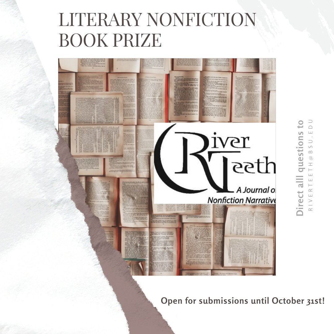 Have a nonfiction manuscript trying to find a home? Don't miss the October 31st submission deadline for River Teeth's Literary Nonfiction Book Prize.