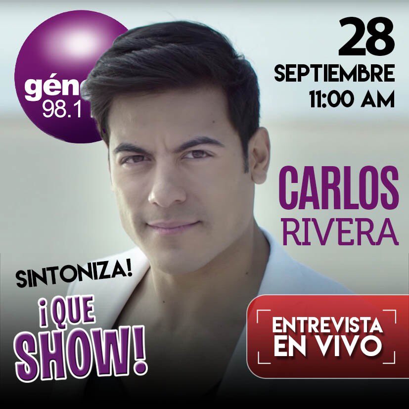 Hoy 1 de Octubre ¡No te pierdas! #EnLaVidaDe @_CarlosRivera 5:00 Pm Hora México/ escúchalo aquí: player.listenlive.co/33171/es