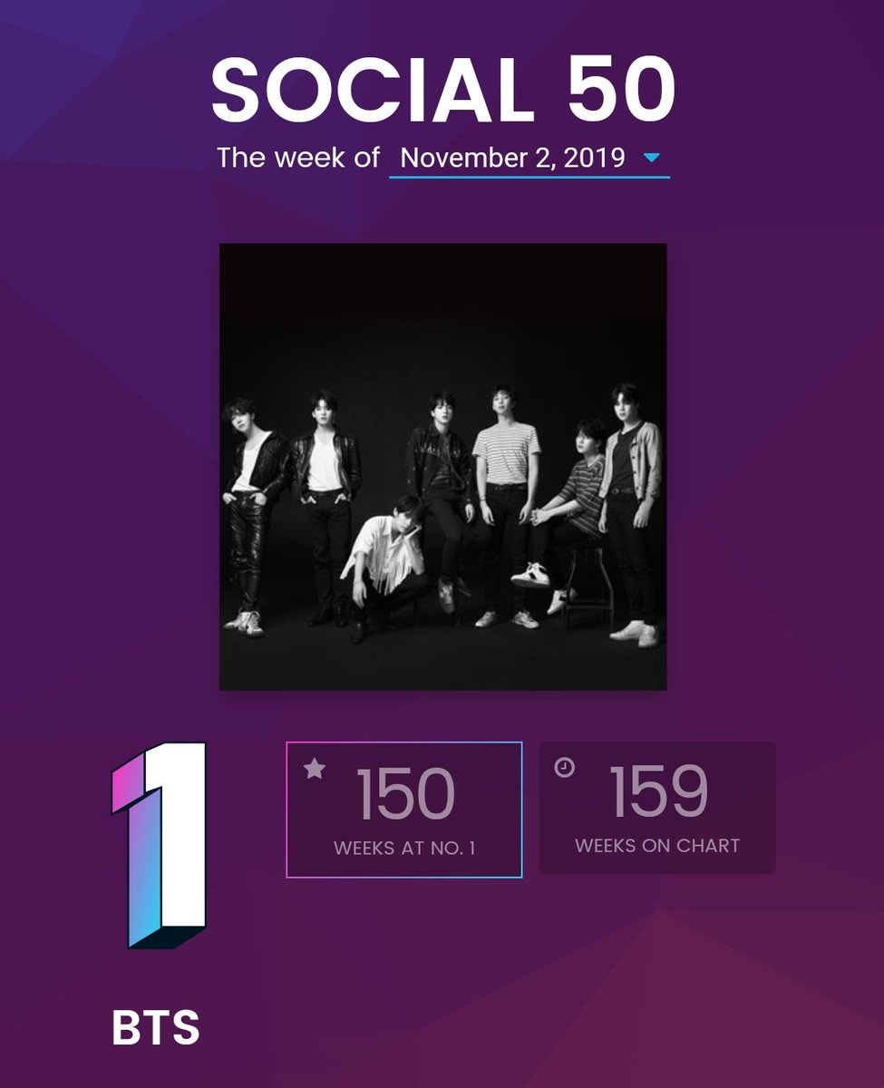 [ÖHÖM..] Billboard Sosyal 50 listesinde, 150 haftadır zirvede vakit geçirdik ve bir rekor elde ettik ama kendimize koyduğumuz hedefi yani 200 haftayı henüz gerçekleştiremedik. Bu tweetin altına olabildiğince @BTS_twt'i etiketleyerek destek olmanızı rica ediyoruz. 😊