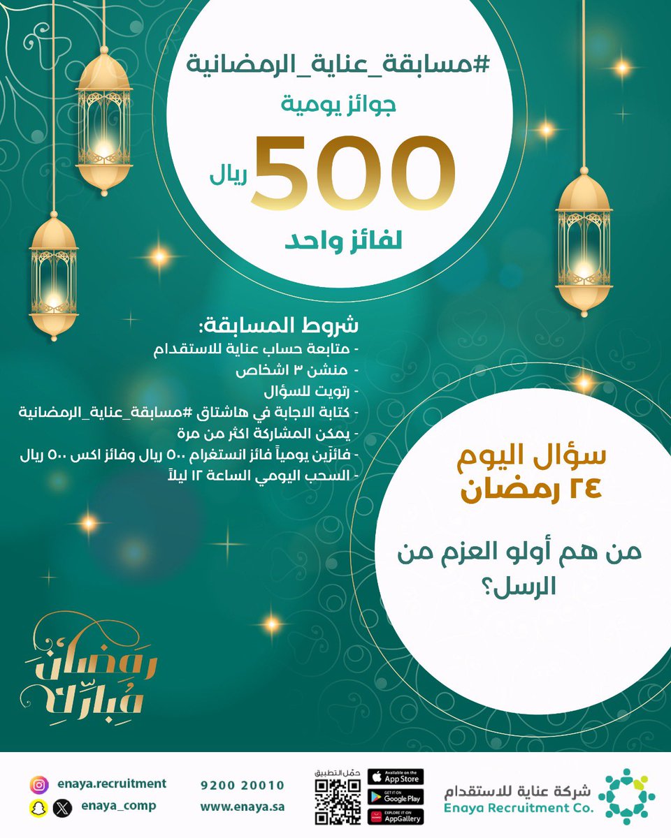 سؤال اليوم 24 رمضان مسابقة عناية رمضانية ✨🩶 #عناية_الاستقدام #رمضان #مسابقة_عناية_الرمضانية #السعودية #تنظيف #عمالة_متخصصة #خدمات #طلب #احتياج #ضيفة