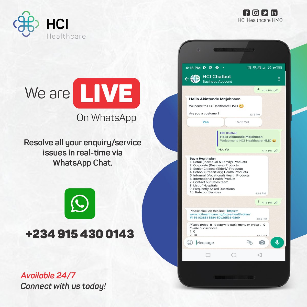 Introducing the new HCI Healthcare WhatsApp Chatbot.