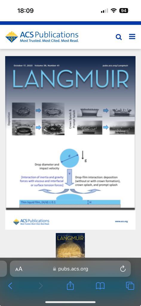 Thrilled to make the front cover at #Langmuir latest issue! Exploring drop & splash dynamics has been an exhilarating journey with my mentors Dr. Manglik and Dr. Jog. #ScientificFrontiers #Mentorship #CollaborationWelcome #MyACSCover @ACS4Authors #UniversityofCincinnati