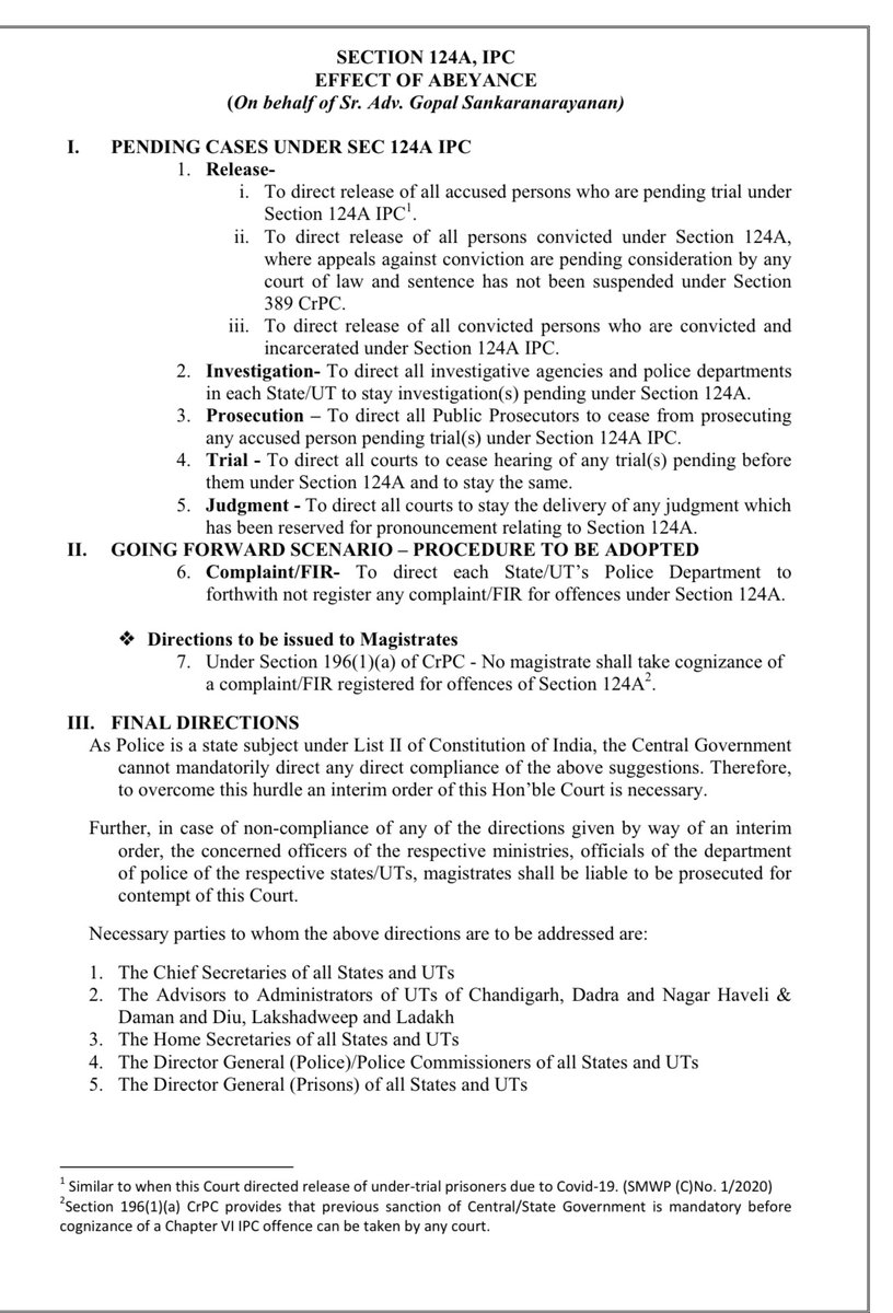 Victory! Supreme Court stays Sec 124A- no new cases can be filed, existing cases can apply for bail & release immediately. Thank you to my lawyer Sr. Advocate Gopal Sankaranarayan for his 1 pager which swung the day!