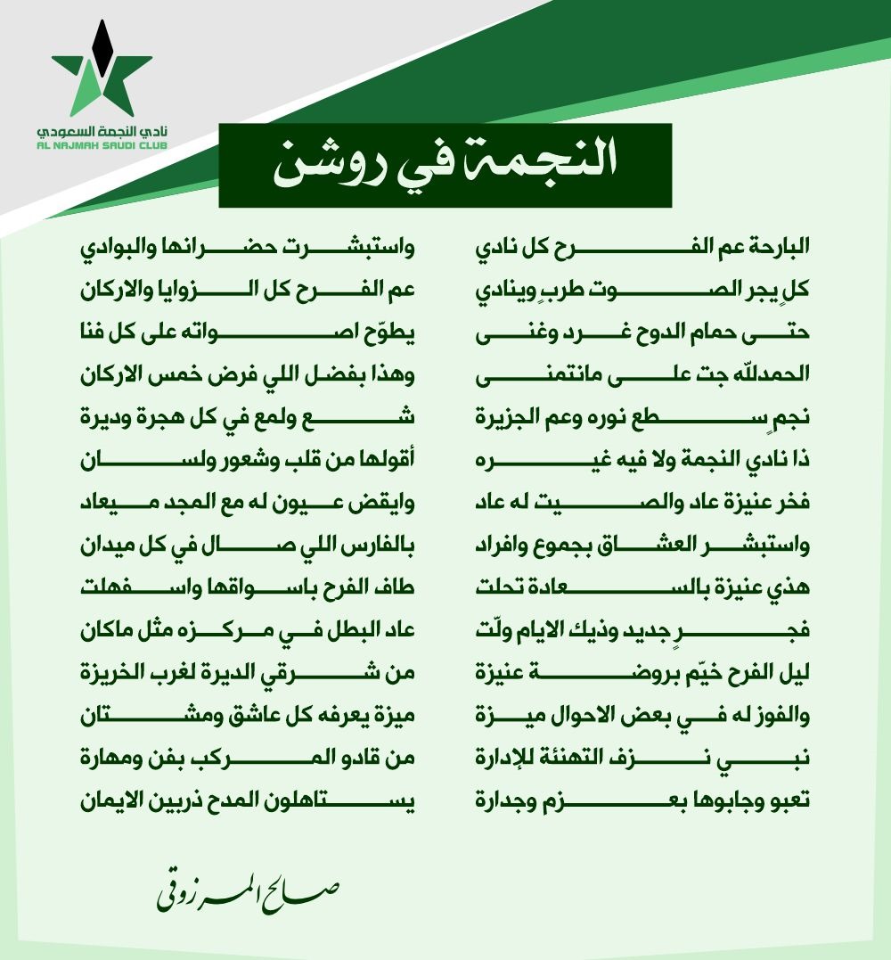 بمناسبة صعود نادي #النجمة لمصاف الكبار في دوري روشن نهدي هذه الأبيات التي تليق بالنادي العريق ..