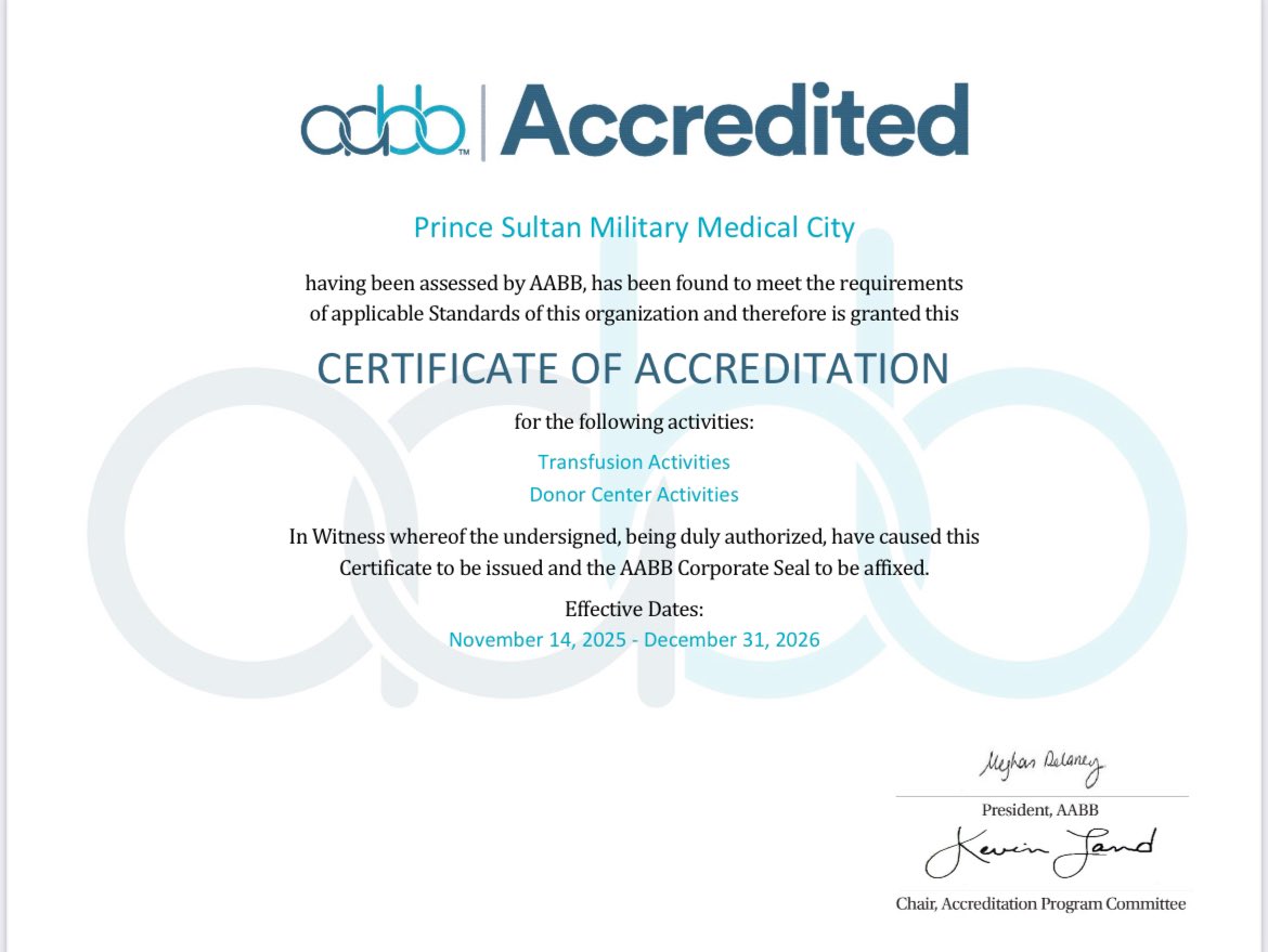 Im delighted to say we have the aabb assessment performed on our blood bank and we received the accreditation with Zero Non-conformance