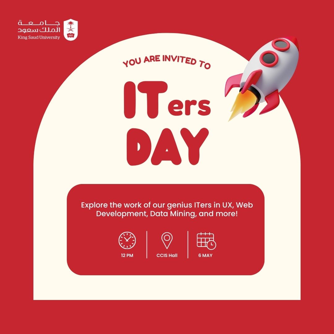 يعلن قسم تقنية المعلومات بكلية علوم الحاسب والمعلومات وبرعاية برنامج ماجستير العلوم في تقنية المعلومات، عن إقامة ورشة عمل بعنوان "استكشاف الذكاء الاصطناعي التوليدي: إطلاق قوة التعلم الآلي" يوم الثلاثاء الموافق 16 يناير 2024. علماً بأنه يوجد شهادة حضور. للتسجيل:…