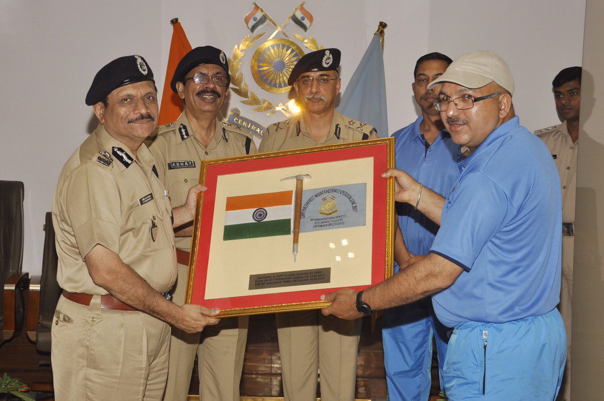 Cmdt Sunand Kr, handed over National & CRPF Flags to DG CRPF in a Flag-In Ceremony after successful Pre Everest expedition. #Superascenders