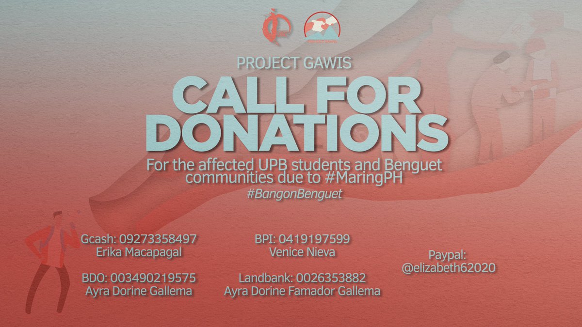 📣 CALL FOR DONATIONS 📣 Following the onslaught of Typhoon Maring, the UP Baguio University Student Council is accepting monetary donations for affected UP Baguio Students and communities in Benguet. You may course your donations through the following channels: