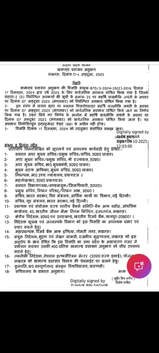 सरकार की सभी स्कीमों को लागू करने की जिम्मेदारी है बैंक वालों की परंतु बात जब छुट्टी की आती है तो बाकी विभाग अपने आप आगे आ जाते हैं और बैंक वाले पीछे रह जाते हैं। सभी विभाग के कर्मियों को छुट्टी की बधाई। Thankyou @myogiadityanath ji. 🙏