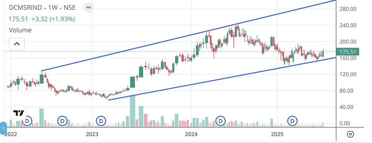 #DCMShriramInd #DCMSRIND Suggested at 82, did 240+ Cmp 175.5, support 160 Upside 190/212/230/245/270/290/300+ Fresh view above it Decent swing opportunity here Below 160, it can retest 150/140/125 Educational view #StockMarket #StocksToWatch #StockMarketIndia #Stocks https://t.co/U3DtLUxcPr