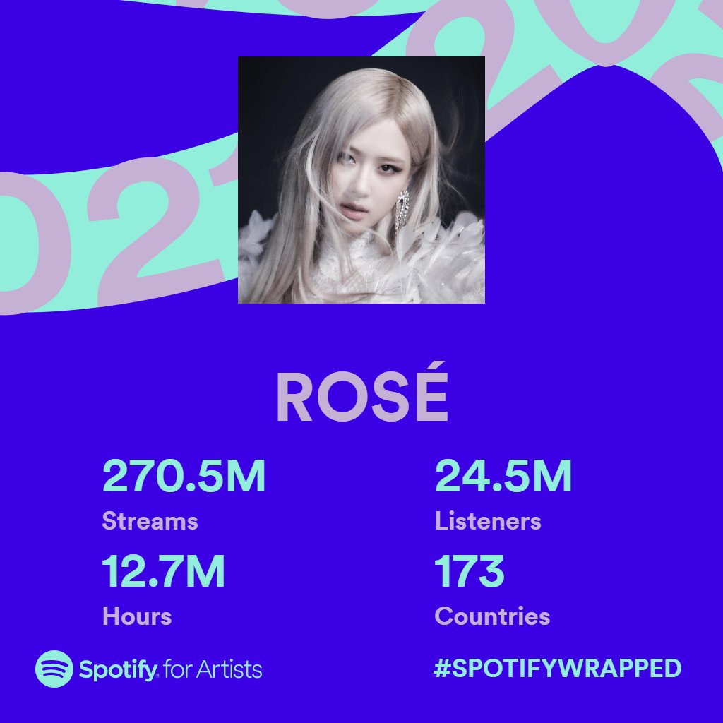 Thank you so much for streaming #OnTheGround and #Gone on @Spotify 🎵 #BLINKs have made 2021 — a remarkable year and please keep supporting #ROSÉ & #BLACKPINK ▶️ open.spotify.com/artist/3eVa5w3… #로제 #블랙핑크 #스포티파이 #SpotifyWrapped #2021ArtistWrapped @SpotifyKR