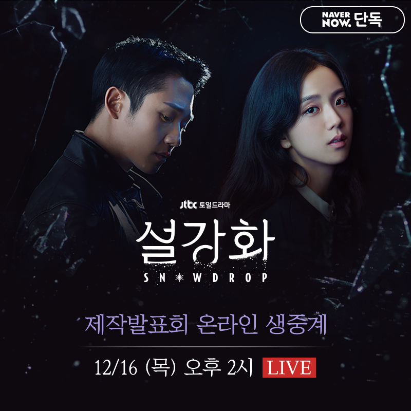 [𝗟𝗜𝗩𝗘📣] 𝟭𝟮월 𝟭𝟲일 (목) 오후 𝟮시 JTBC 드라마 〈설강화 : snowdrop〉❄️ 제작발표회 생중계! 【NAVER NOW】 설강화 채널에서 생중계 보기! ☞ now.naver.com/player/13490 JTBC 토일드라마 《#설강화》 𝟭𝟮월 𝟭𝟲일 (목) 𝟭𝟬시 𝟯𝟬분 첫 방송🌃